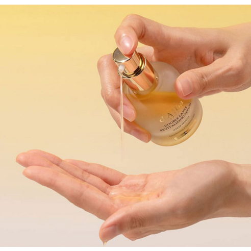 이 제품의 가장 큰 특징은 세럼층과 오일층이 나뉘어 있는 더블 레이어 구조라는 점이에요. 탄력 세럼과 영양 오일이 7:3의 비율로 구성되어 있는데, 사용하기 직전에 흔들어 섞어주면 신선한 상태의 고농축 제형을 경험할 수 있다고 하더라고요.